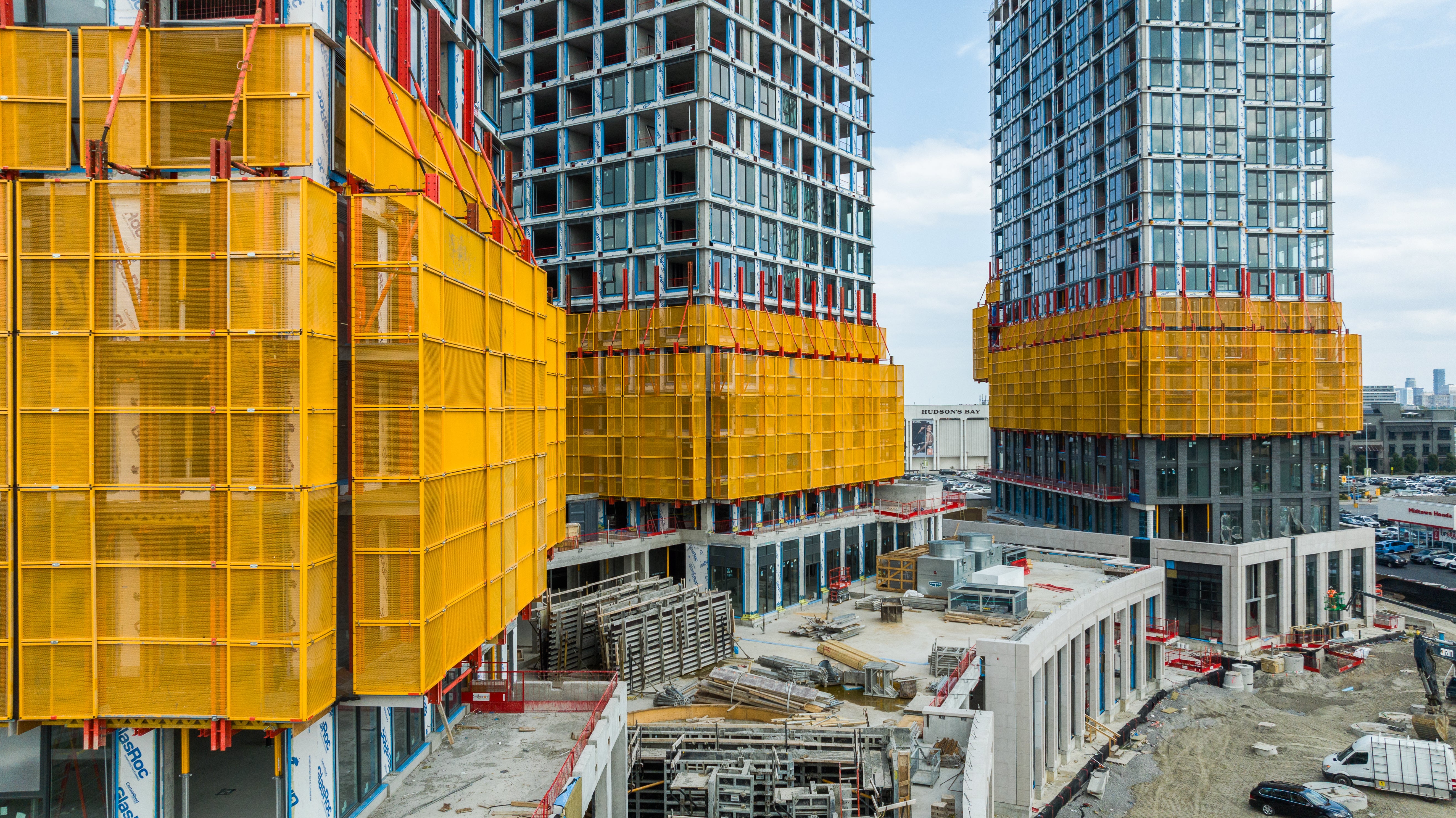 Voici le 3450 Dufferin : un ensemble locatif à usage mixte comprenant des tours de 30, 28 et 24 étages, conçu par IBI Group Architects pour Fitzrovia Real Estate, AIMCo et Hazelview Investments. Situé à l'angle sud-ouest de la rue Dufferin et de l'avenue Bridgeland, dans le quartier Yorkdale de Toronto, ce projet, connu sous le nom de « The Sloane & The Trafford », a été développé en collaboration avec Arcadis Architect. Les résidents bénéficieront de la proximité de commodités telles que des épiceries, des restaurants, des parcs, des écoles locales, des options de transport en commun et d'un accès pratique à l'autoroute pour faciliter les déplacements.