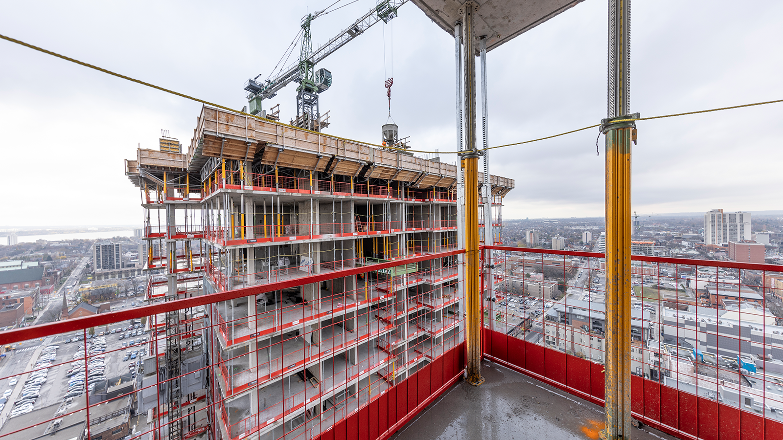 Forty-five King se compose de deux tours résidentielles qui ont été achevées en seulement deux ans. Ce vaste projet s'étend sur 500 000 pieds carrés et comprend un total de 581 unités résidentielles, chaque tour s'élevant à 30 étages. Un podium de 3, 5 et 6 étages abrite également des commerces et des espaces d'agrément. En outre, le complexe comprend des espaces verts extérieurs, une piscine et un parking souterrain sur quatre niveaux.